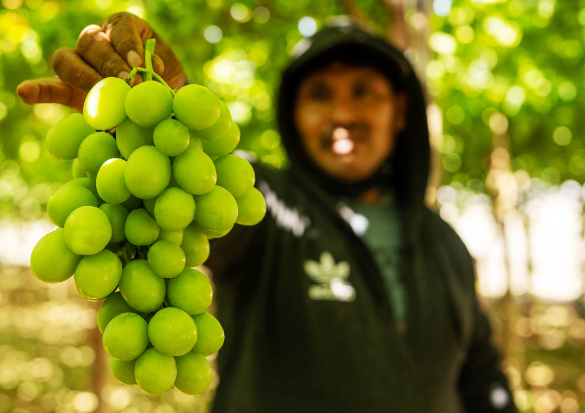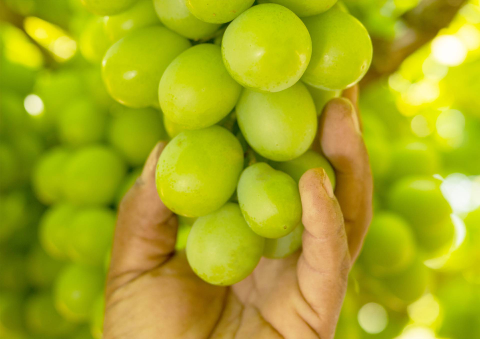 Seedless green grapes with large round berries. Firm skin, consistent and crunchy pulp. It has a special muscatel sweet flavor.